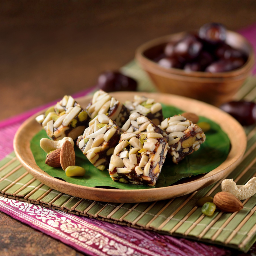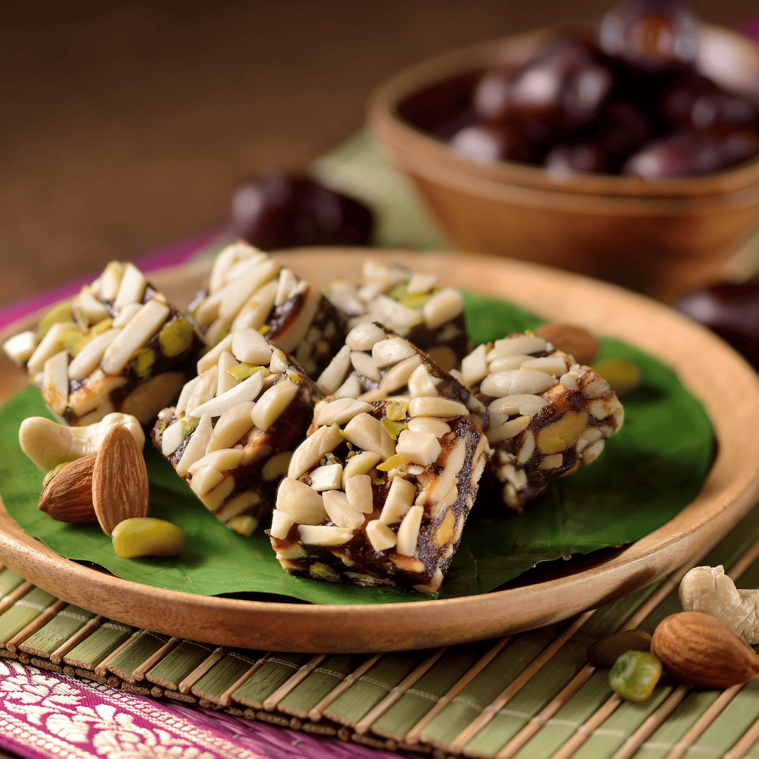 With the goodness of the choicest dates and dry fruits , as well as no added sugar , these crunchy , nutty squares are the perfect versatile , guilt-free desserts or snack for in-between meals.